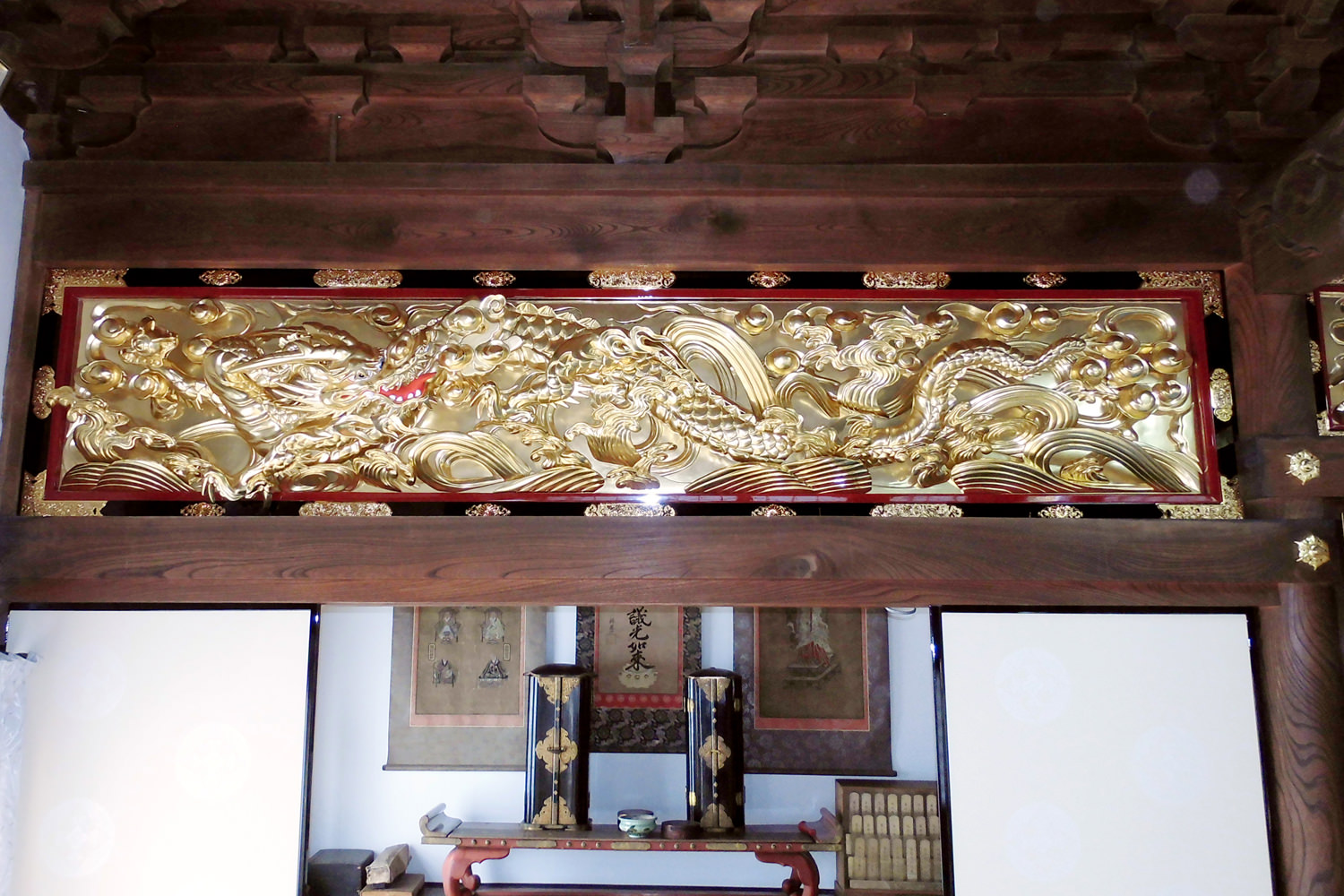 本間前欄間3枚修復[塗替え、金箔押替え、金具新調]