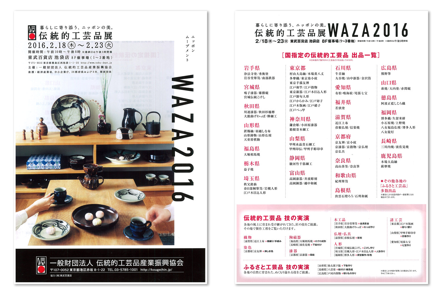 2月中旬に、東武百貨店池袋にて開催の伝統的工芸品展WAZA 2016に出展いたします。