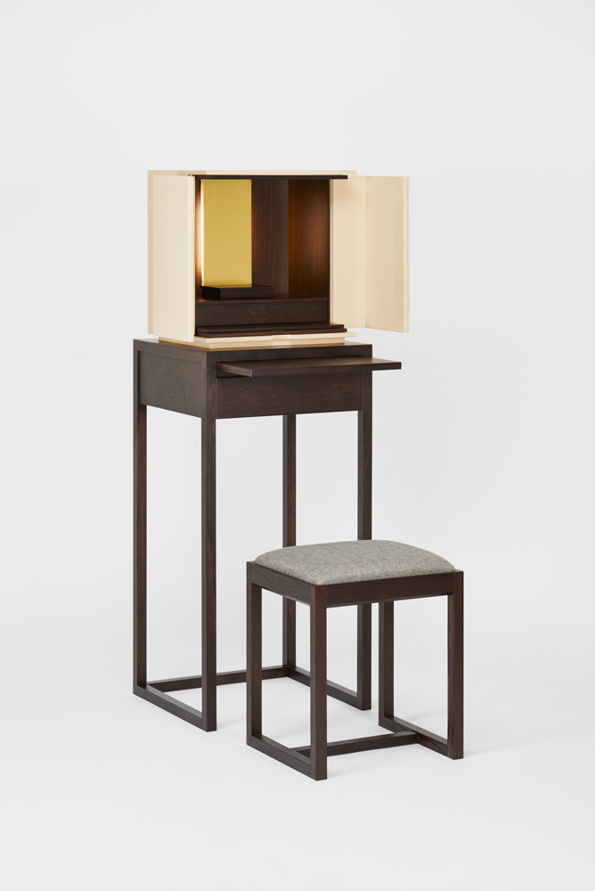 現代の住まいにおいて、使う人の生活スタイルに合わせた使い方ができる“方壇”。 慌ただしい毎日のなかで短時間でも手を合わせたい人、座ってじっくりと向き合いたい人、既にある家具の上に置いて拝みたい人、それぞれの暮らし方に合わせた使い方が可能です。